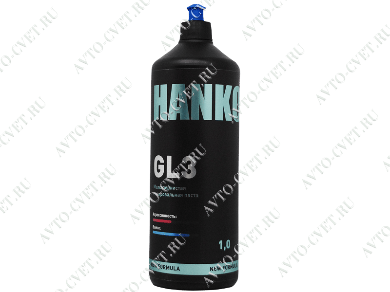 HANKO GL3 NEW FORMULA - Мелкозернистая доводочная паста для машинной обработки. Предназначена для финишной полировки и удаления голограмм и микроцарапин со старых и свежих покрытий. Устраняет разводы от предыдущей пасты, царапины после тонкой шлифовки Р3000-Р5000. Подчеркивает глубину цвета и придает очень высокий зеркальный глянец, защищая лак от воздействия вредных атмосферных условий. Благодаря улучшенной формуле обработка становится быстрее и комфортнее, уровень блеска еще выше, а его расход значительно сокращается. Применяется с ротационными (вращательными) полировальными машинками.