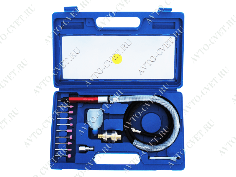 Пневмоинструмент для полировки металлических поверхностей в кейсе.