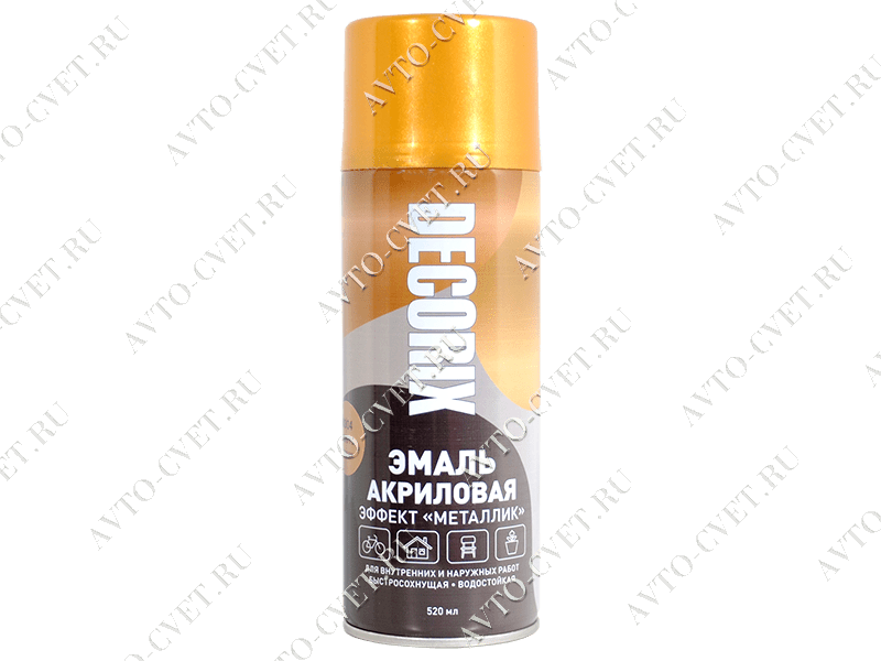 Высококачественная универсальная акриловая эмаль DECORIX с эффектом МЕТАЛЛИК предназначена для бытового применения, декоративно-оформительских работ, строительства и ремонта. Применяется для ремонтного окрашивания металлических изделий, мебели, бытовой техники, инструментов, декорирования помещений и других видов работ. Аэрозольная эмаль удобна для окрашивания небольших поверхностей и труднодоступных мест. Идеально подходит для поверхностей из металла, древесины, бетона, камня, стекла, керамики и некоторых видов пластмасс. Эмаль образует гладкое глянцевое покрытие, устойчивое к выцветанию.