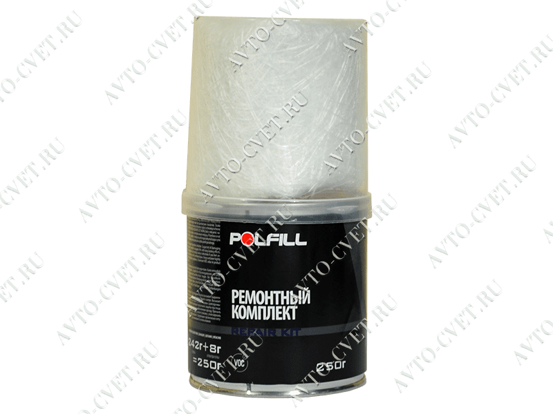В состав ремкомплекта входит полиэфирная смола - 242 г, отвердитель - 8 г, стекломат - 0,25 м2. Ремкомплект служит для заполнения проржавевших отверстий и ремонта поврежденных коррозией участков, а также укрепления ослабленных поверхностей как из металла, так и из пластмасс. Полученная поверхность после отвердевания обладает стойкостью к воздействию атмосферных факторов, бензина, смазок, разбавленных кислот и высоких температур (до 80°C); отличается высокой механической стойкостью, может шлифоваться и покрываться полиэфирными шпатлевками для получения поверхности требуемой гладкости.